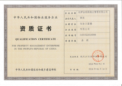 拉薩金鑰匙物業(yè)管理有限公司成立于2014年7月,屬股份制有限責(zé)任公司,注冊(cè)資金伍拾萬(wàn)元人民幣,三級(jí)物業(yè)管理資質(zhì)。是以國(guó)家一級(jí)資質(zhì)企業(yè)、中國(guó)物協(xié)副會(huì)長(zhǎng)長(zhǎng)單位、成都物協(xié)會(huì)長(zhǎng)單位的“成都金房物業(yè)集團(tuán)有限責(zé)任公司”為后盾支撐的專(zhuān)業(yè)化物業(yè)服務(wù)企業(yè)。以標(biāo)準(zhǔn)化、專(zhuān)業(yè)化、藝術(shù)化為指導(dǎo),在服務(wù)中注重親情化氛圍營(yíng)造的同時(shí)恪守“業(yè)主滿(mǎn)意才是硬道理&rdquo……
